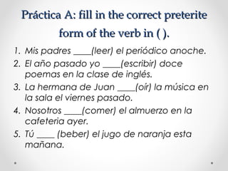 Preterite Reg With Speaking 2 Pdf Nombre Fecha Grammar Regular Preterite The Is A Spanish Past Tense That Is Used To Talk About Actions That Were Course Hero